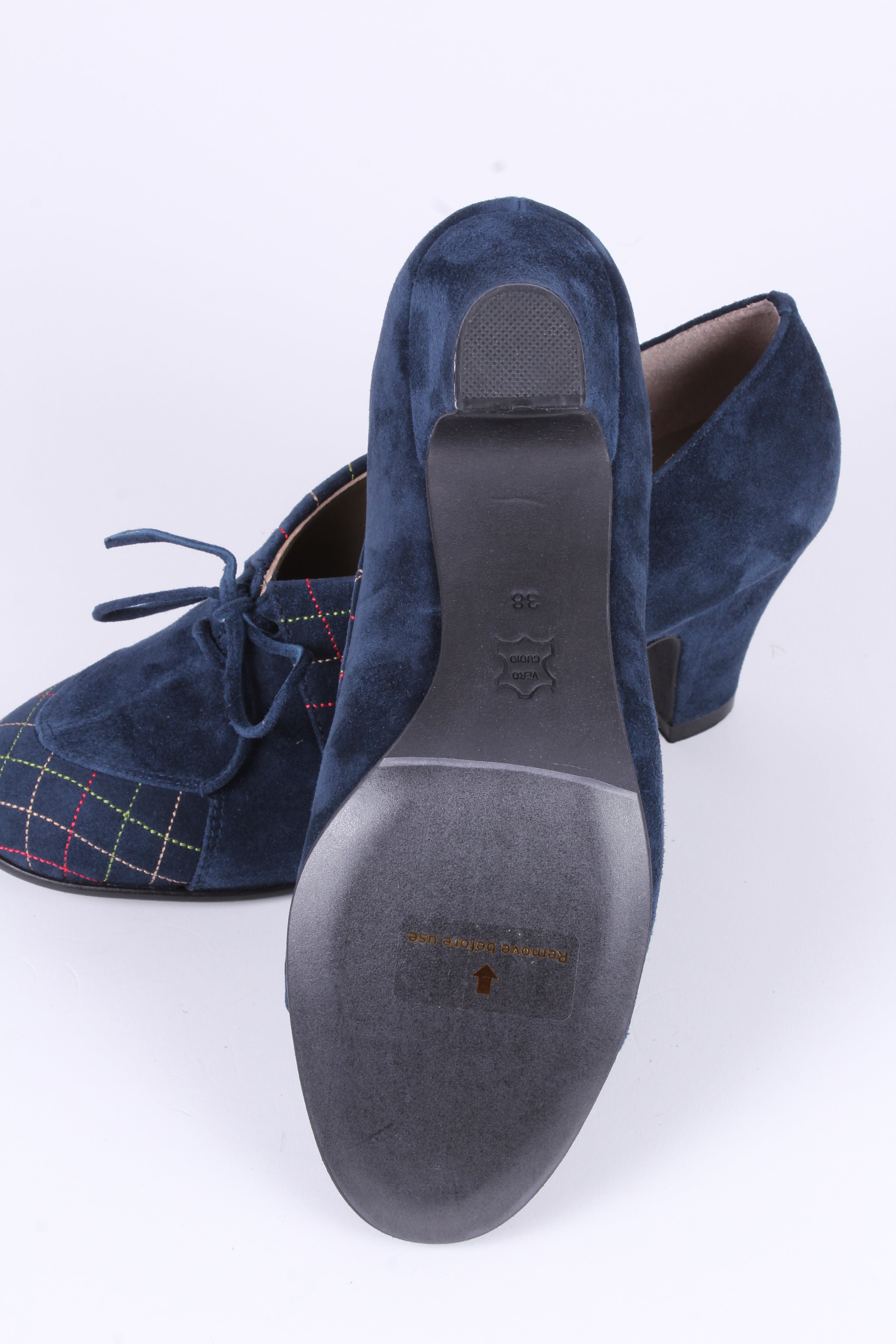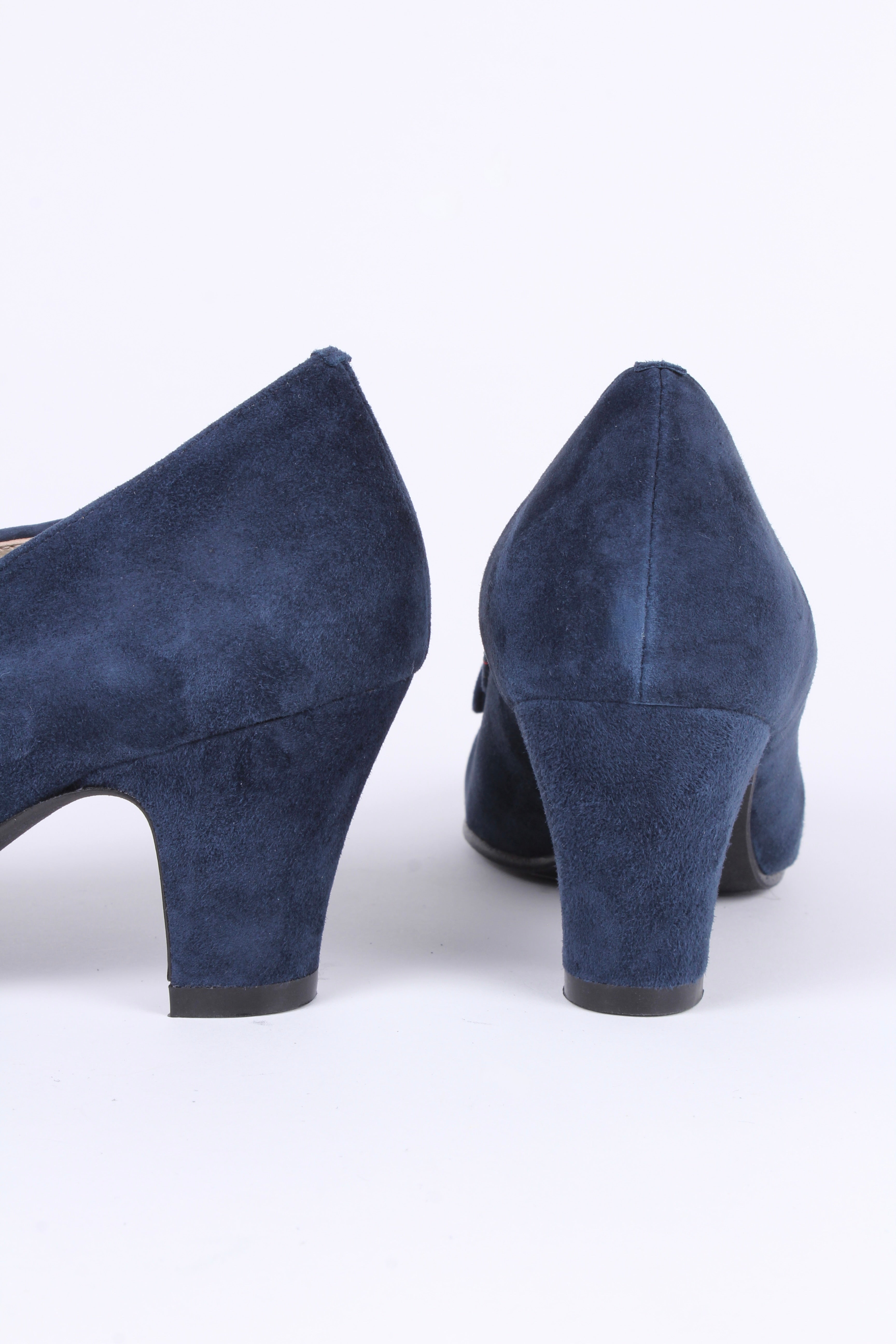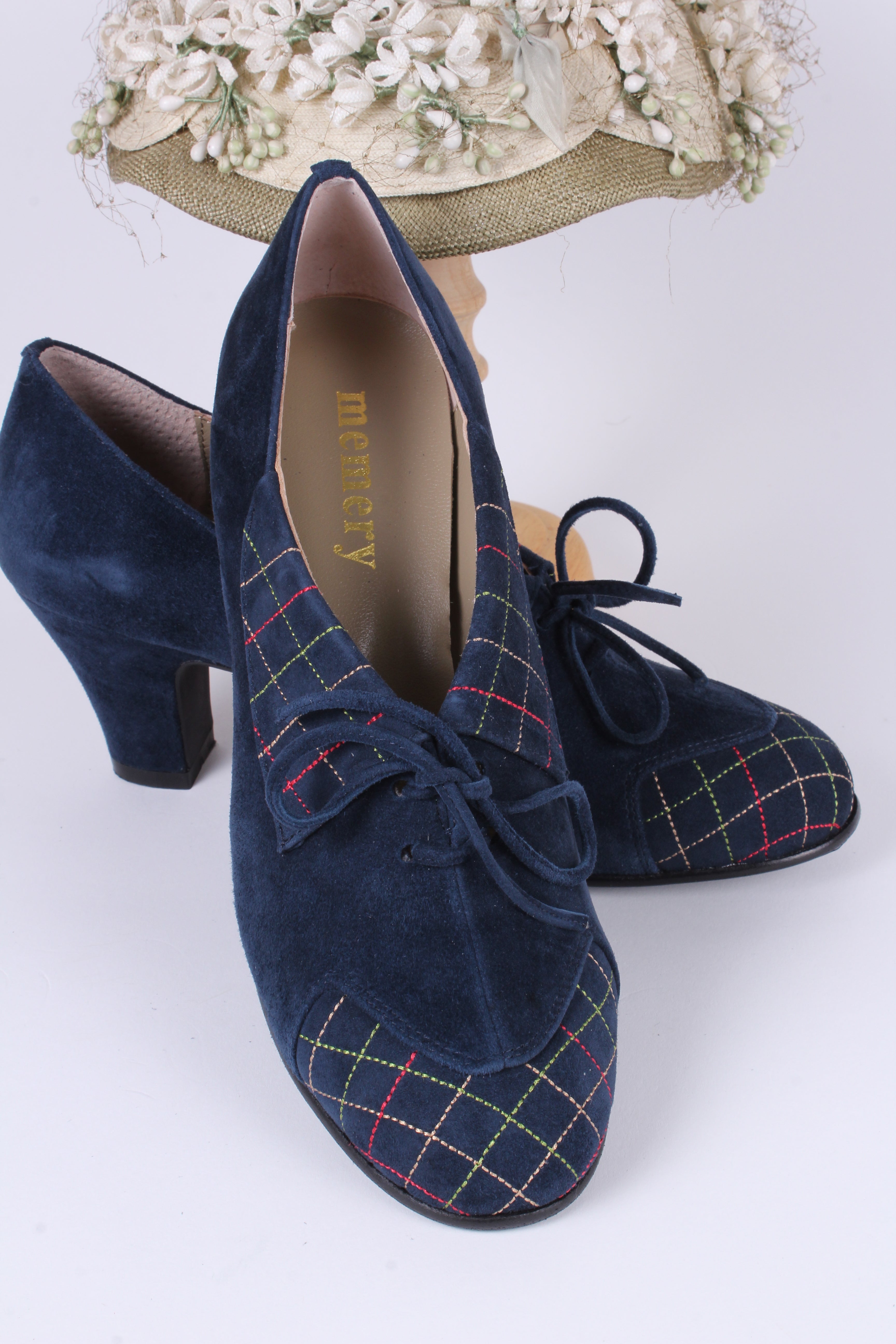 1940'er ruskinds pumps med flerfarvet syet mønster - Marineblå - Edith