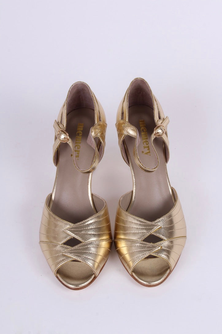 1930'er selskabssko med peep toe - Guld - Susan
