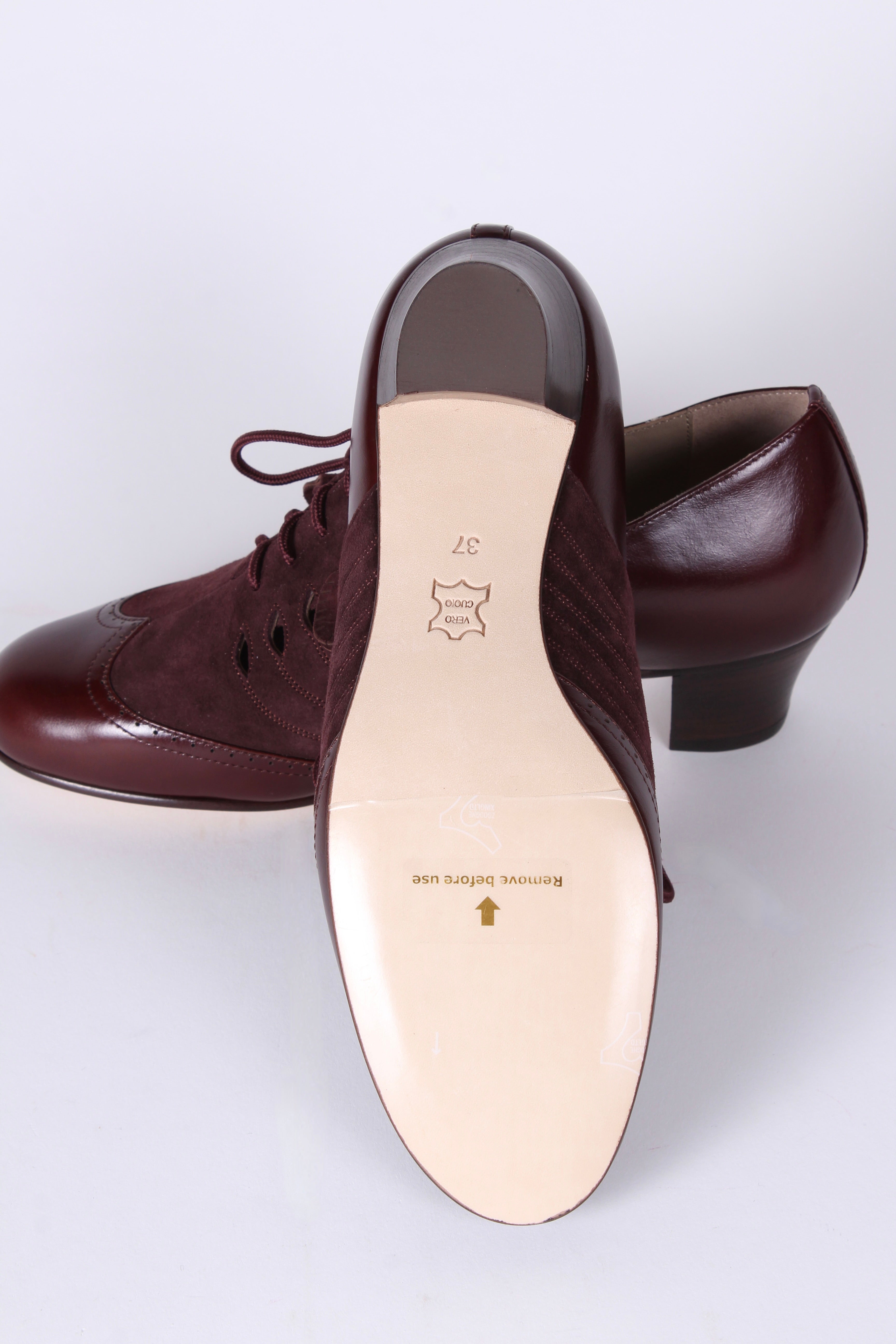 40’er Oxford snøresko i læder og ruskind - Mørkebrun / Aubergine - Clara