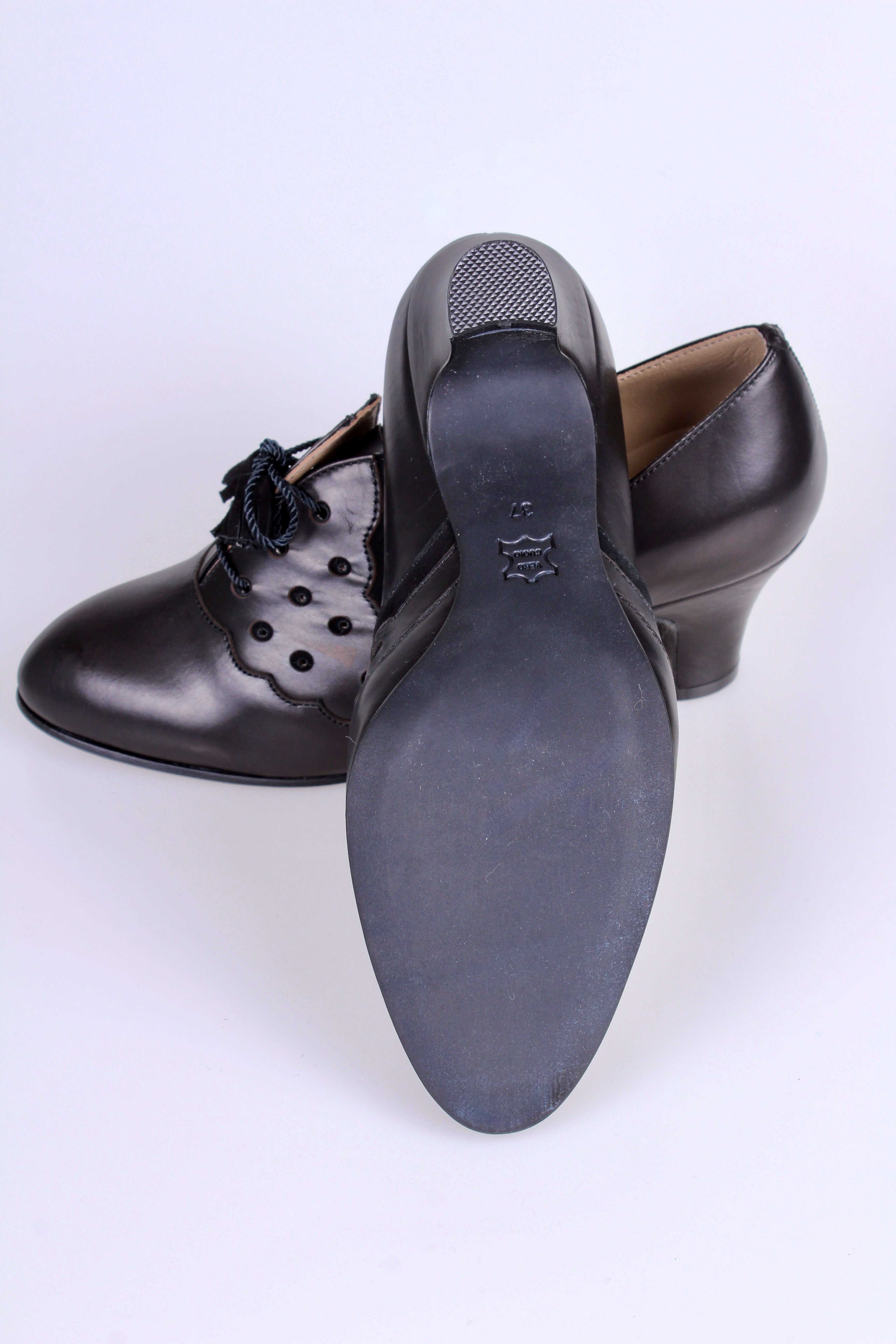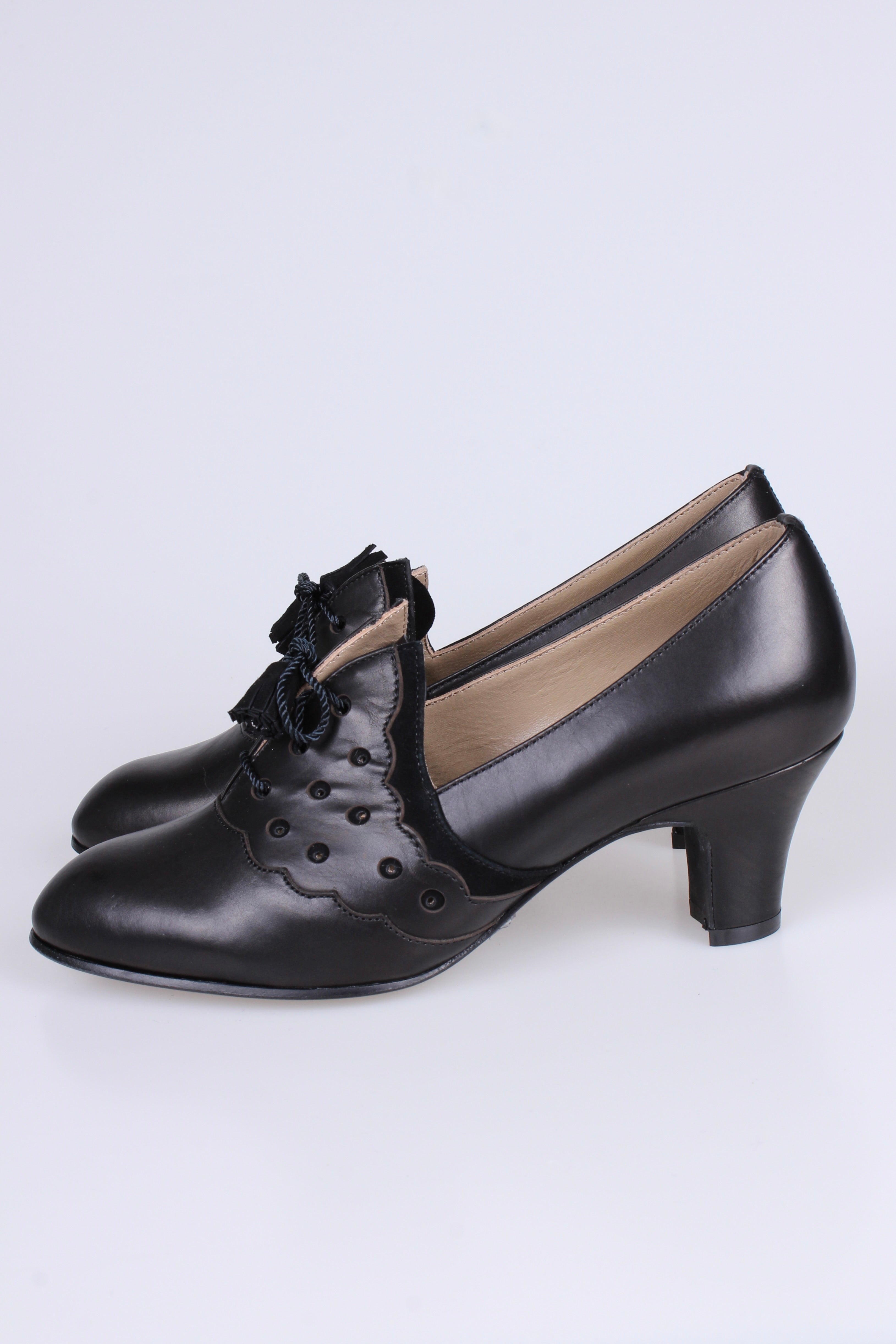 1930'er højhælede snøresko med kvaster - Sort - Mildred