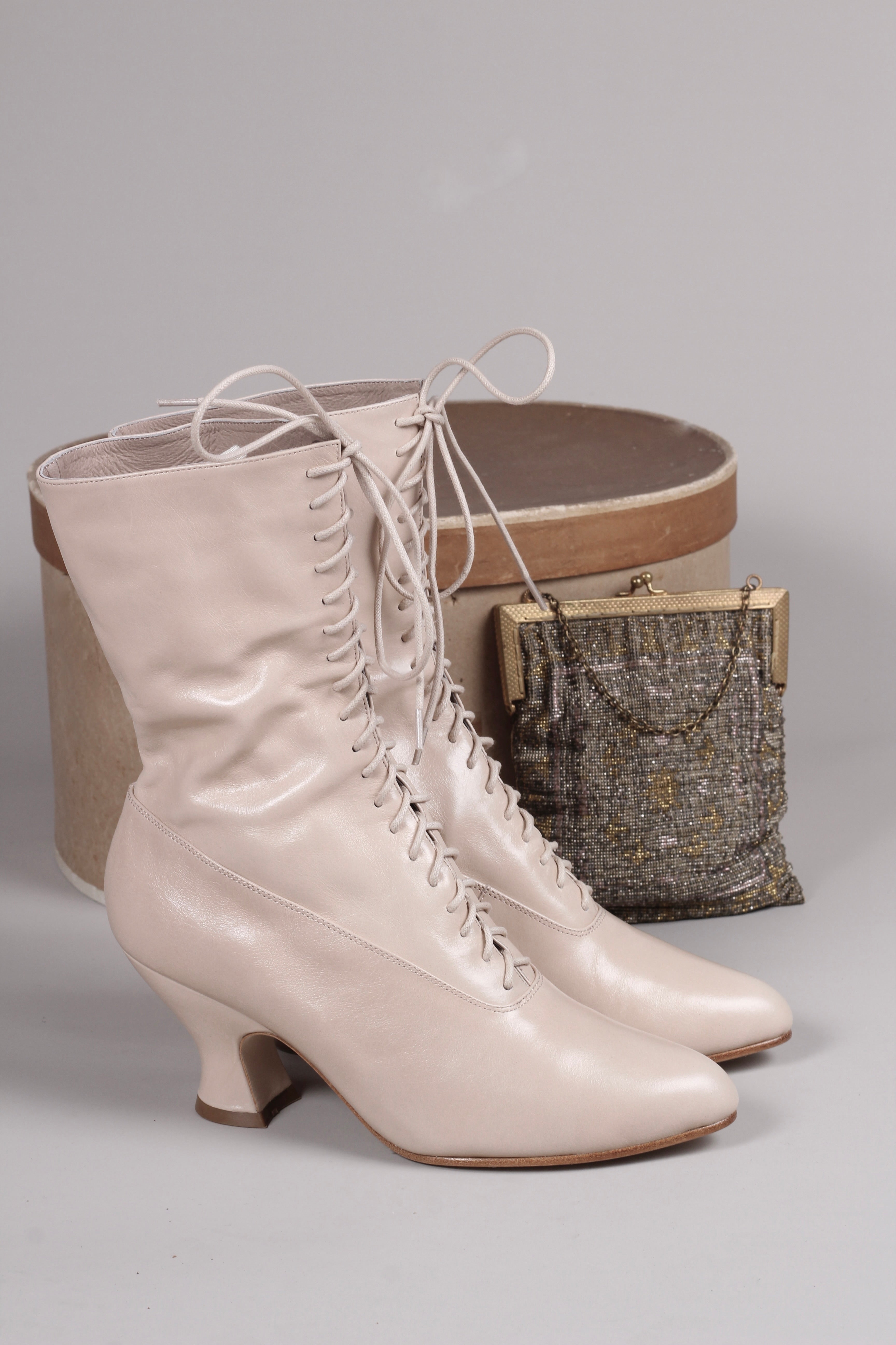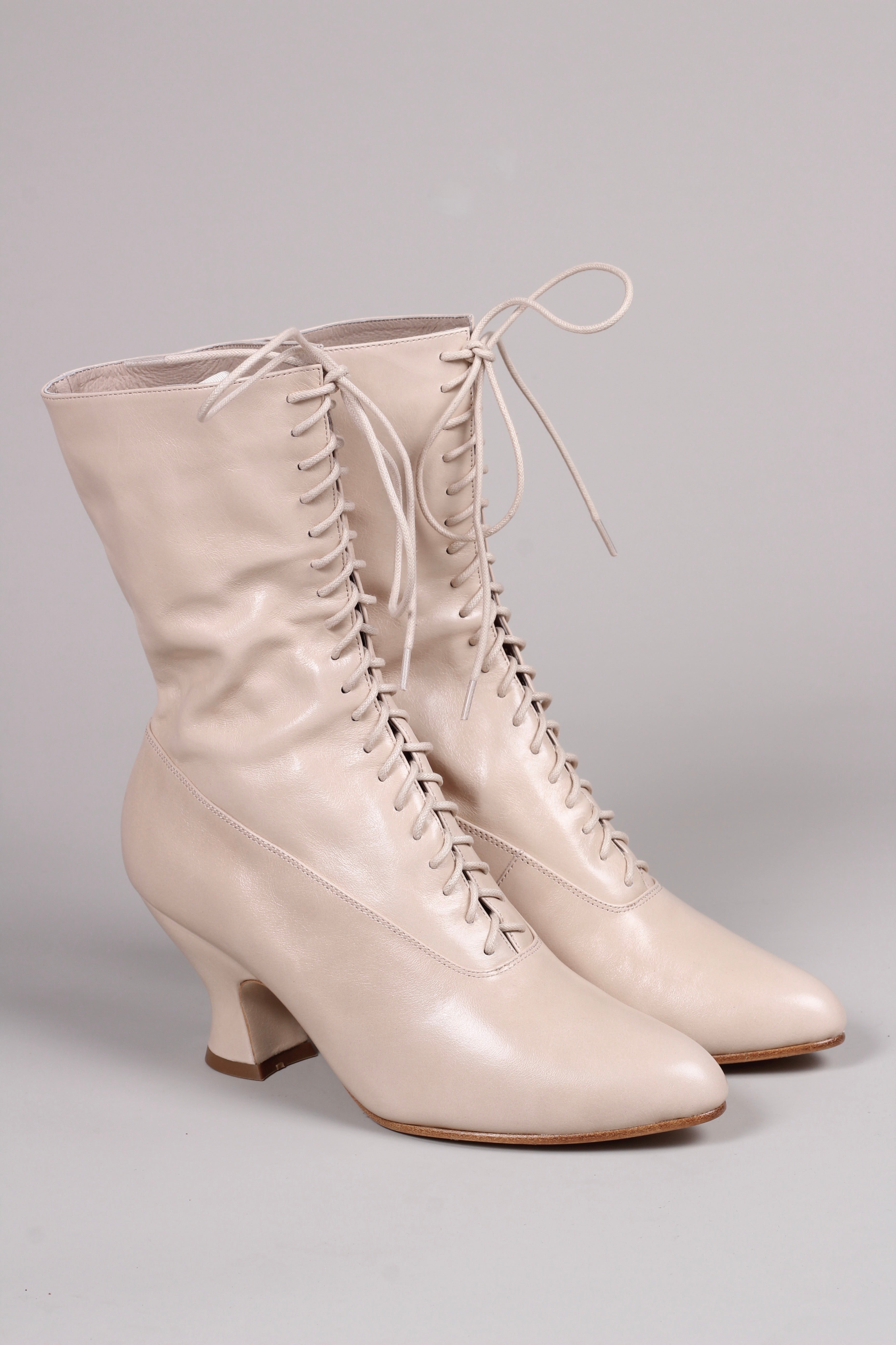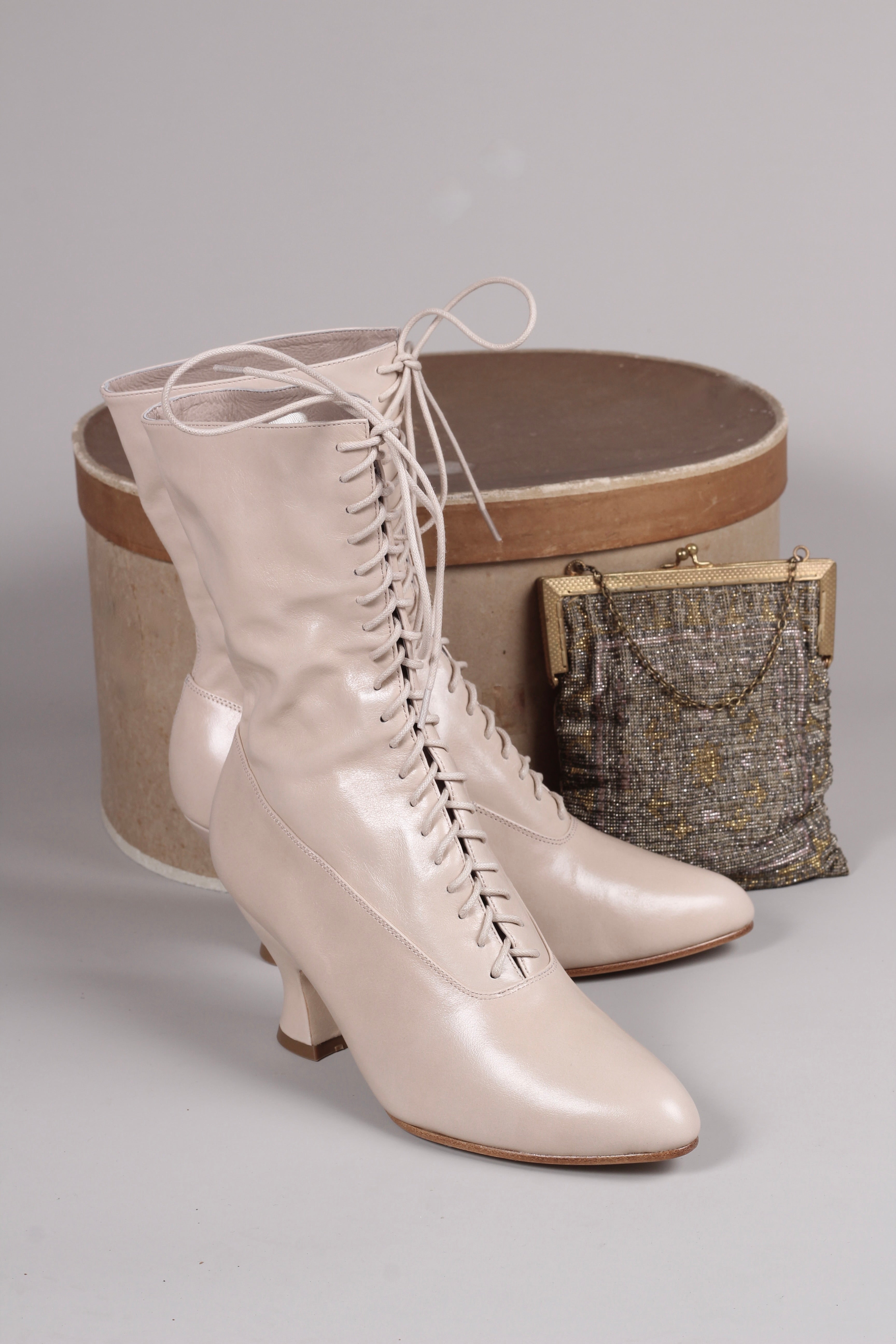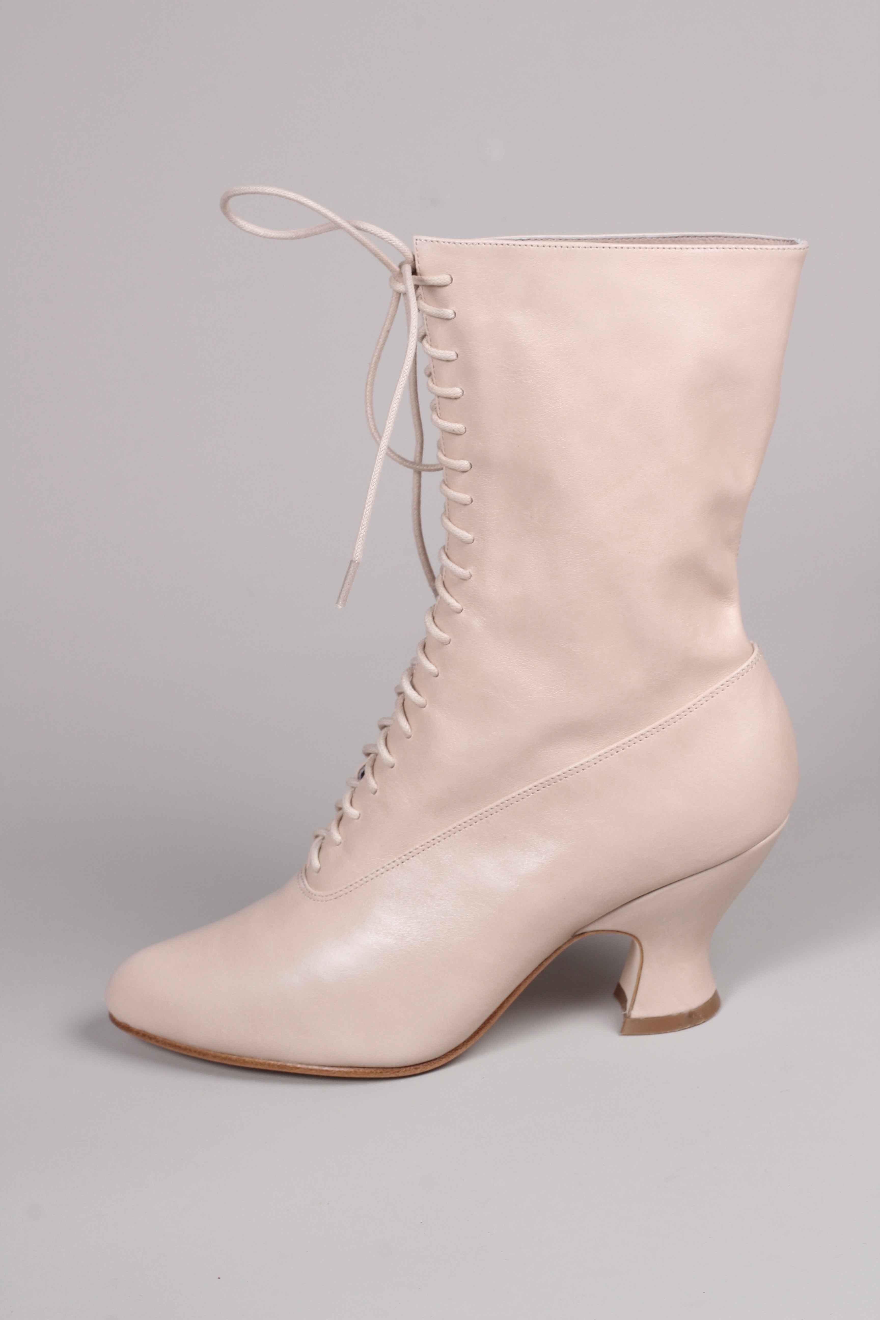 Støvlerne er tætsiddende, med spids snude og med buttede franske pompadour hæle. Hælenes facon er 100% tro overfor perioden og med hælhøjde på 7 cm.