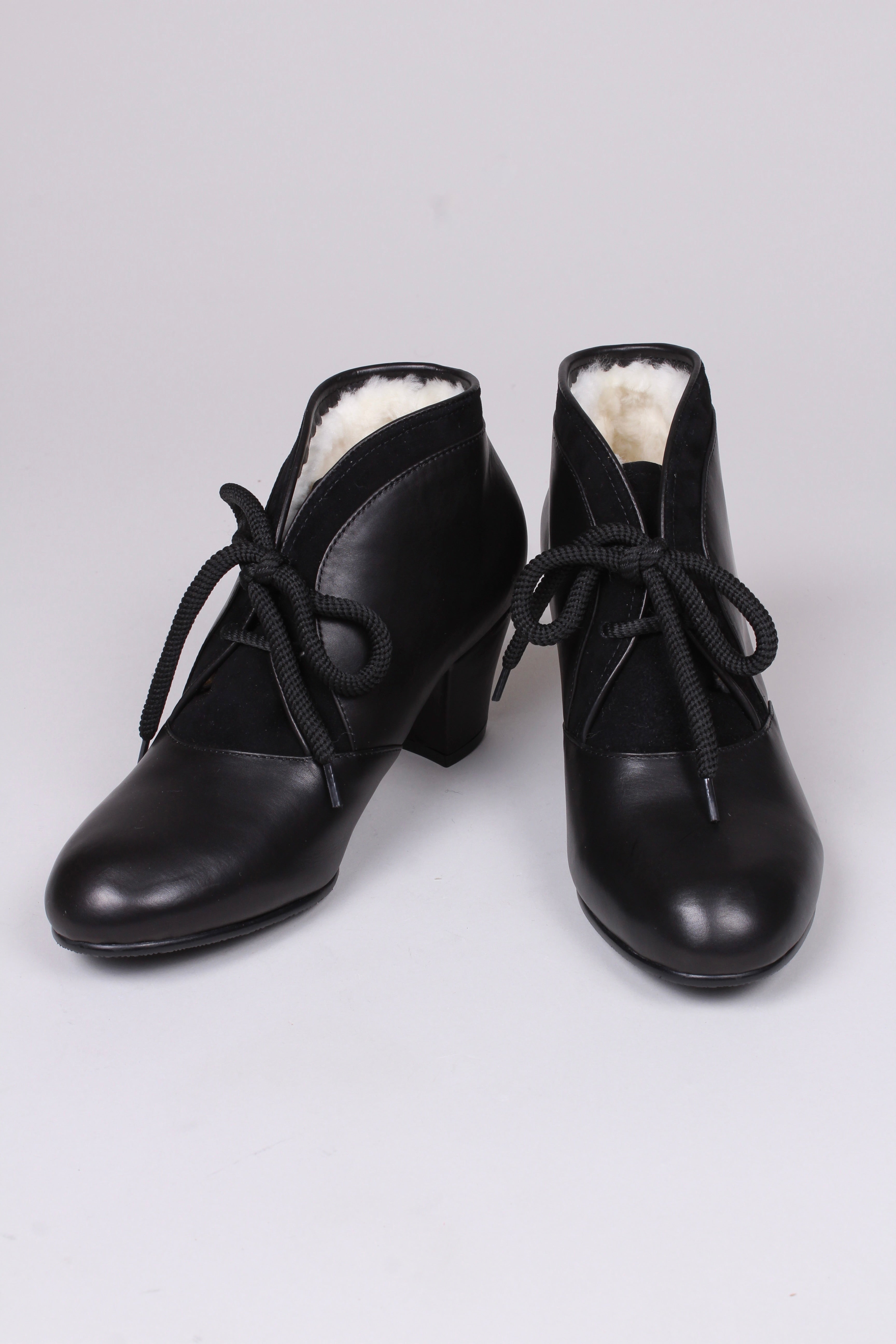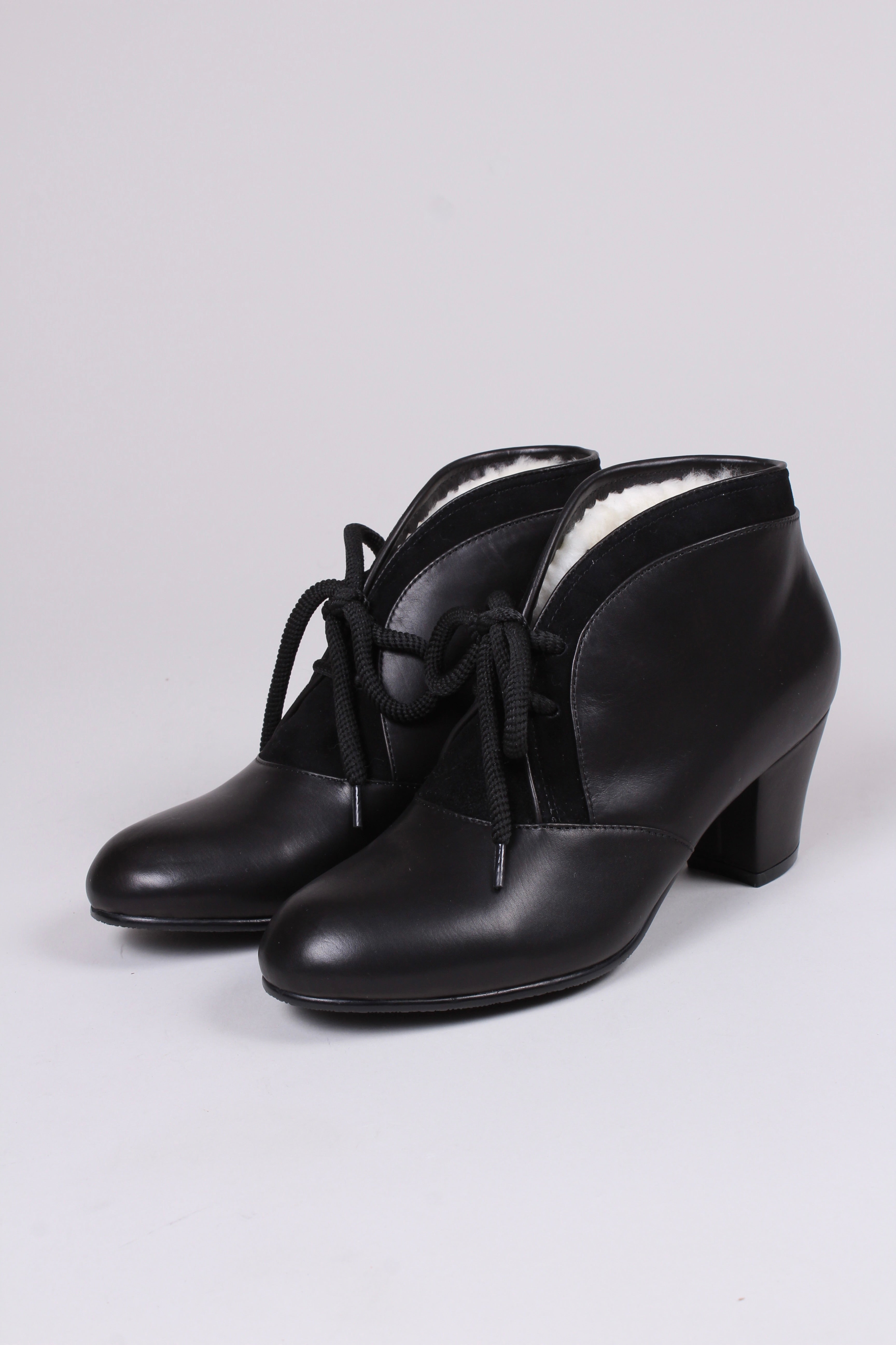 Disse elegante ankelstøvler med snørebånd er inspireret af slutningen af 1940’erne og begyndelsen af 1950’erne. Designet forener vintage charme med moderne komfort og har en mandelformet snude, mediumhøje hæle på 6,4 cm samt et blødt, åndbart uldfor i cremehvid, der holder fødderne varme og behagelige i de kolde måneder.