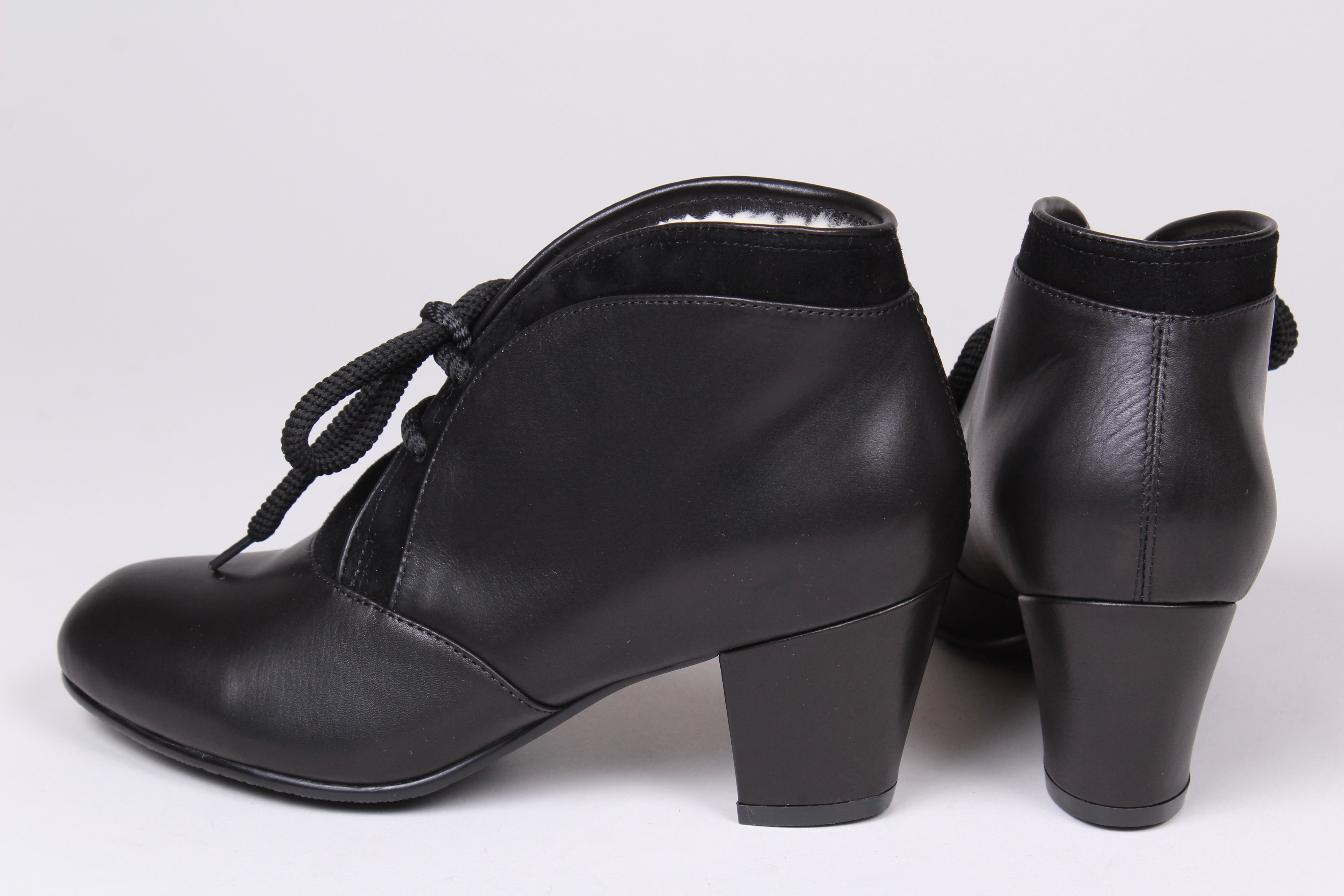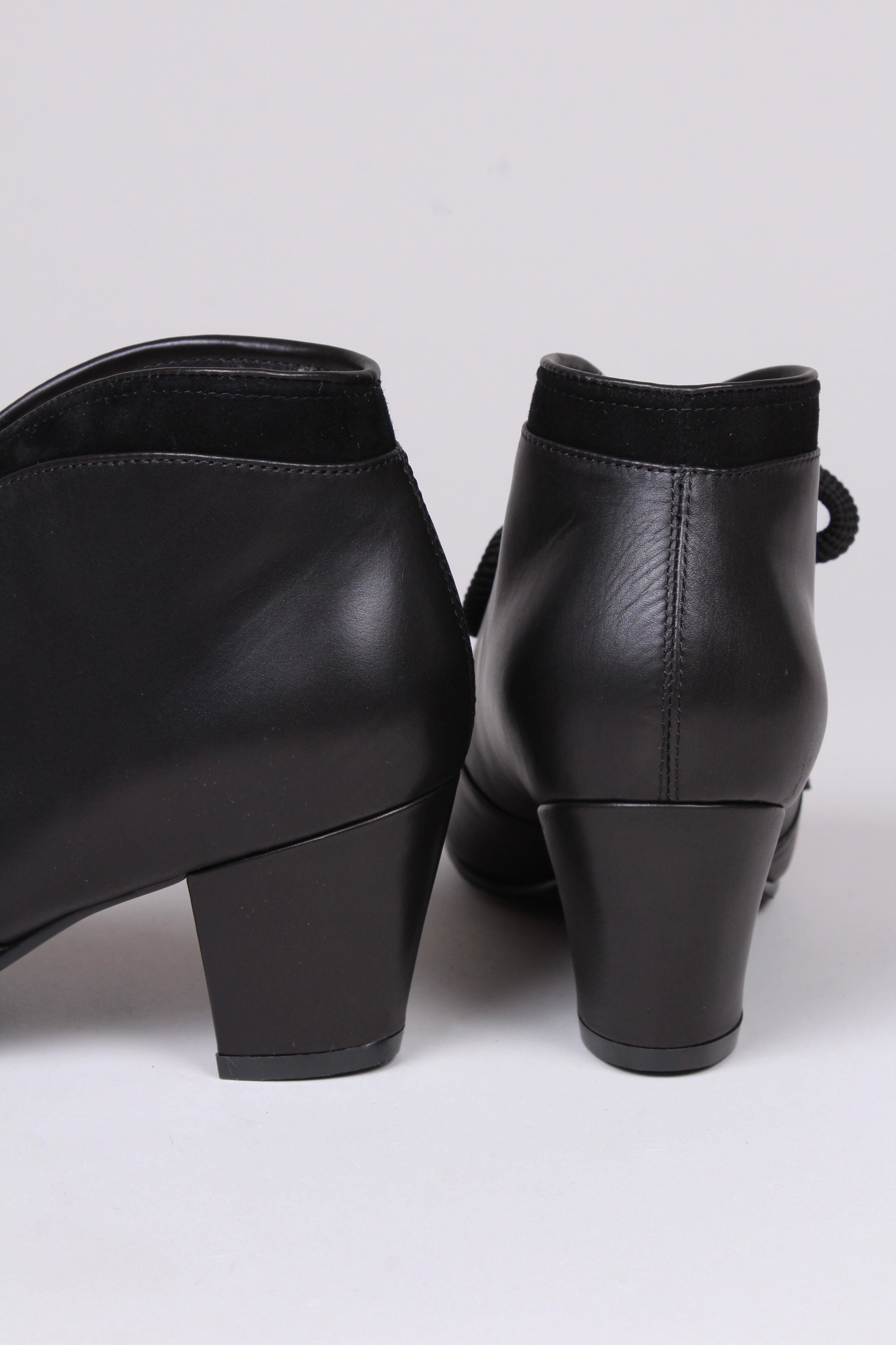Det slankt siddende skaft går til anklen og lukkes med kraftige snørebånd for en sikker og elegant pasform. Støvlerne er omhyggeligt fremstillet i ekstra blødt full-grain læder (den bedste kvalitet man kan få) og afsluttes med fine detaljer i ruskind samt slidstærke gummisåler, som giver godt fodfæste i vådt føre.