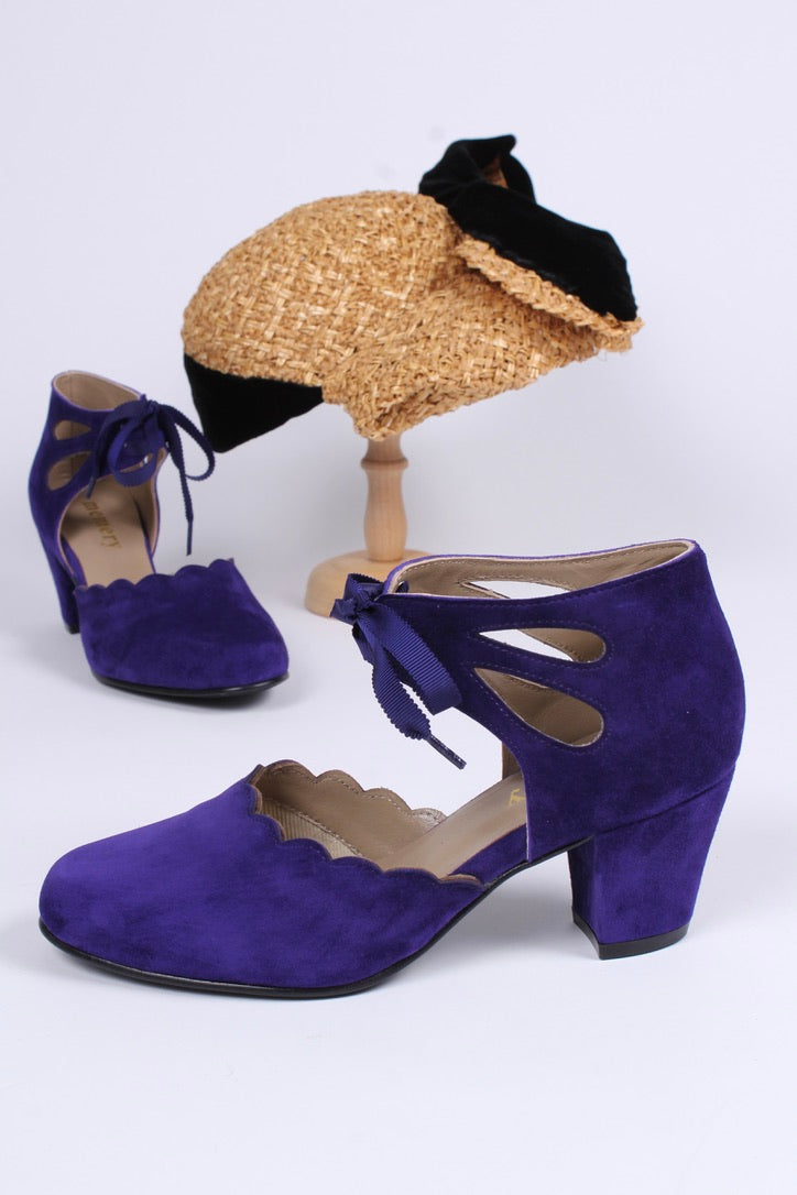 1940'er vintage style pumps i ruskind - Lilla - Alma