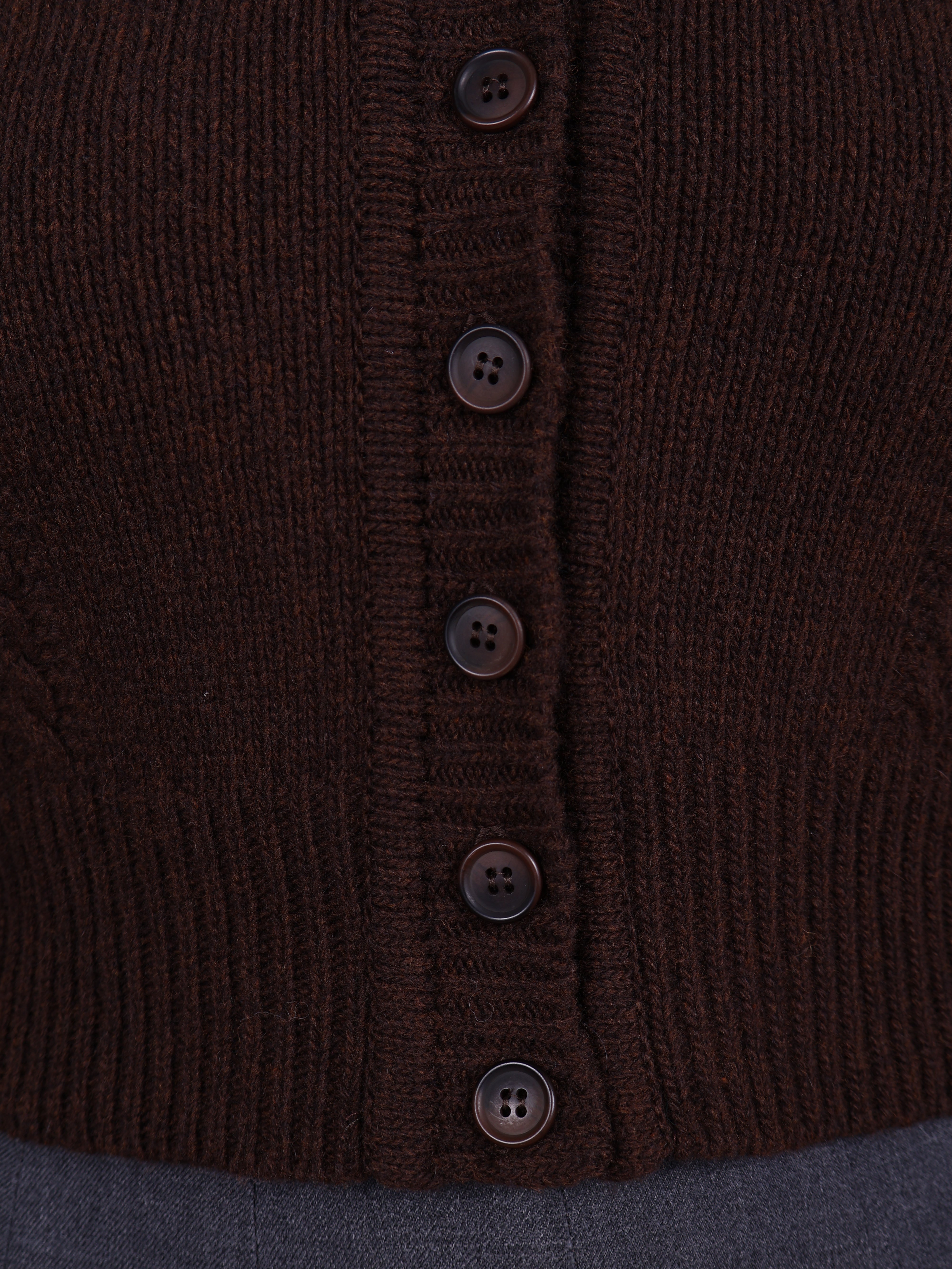 Denne smukt fremstillede cardigan indfanger essensen af den klassiske stil fra 1940’erne og 50’erne. Fremstillet i 100 % merinould tilbyder den både varme og komfort i et tidløst design.
