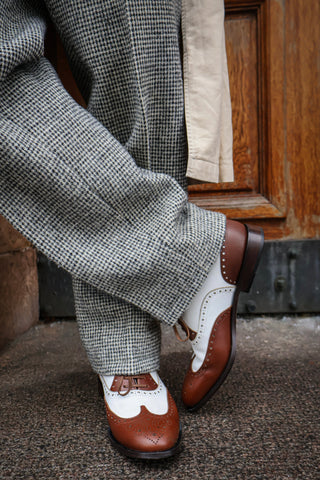 Alle sko er lavet af full grain læder - det bedste du kan få. Sålen er også lavet af læder, hvilket gør skoen fleksibel og åndbar. For komfort er der bløde silikoneindlæg under den indre lædersål - Nu kan du danse natten lang uden ømme fødder :)