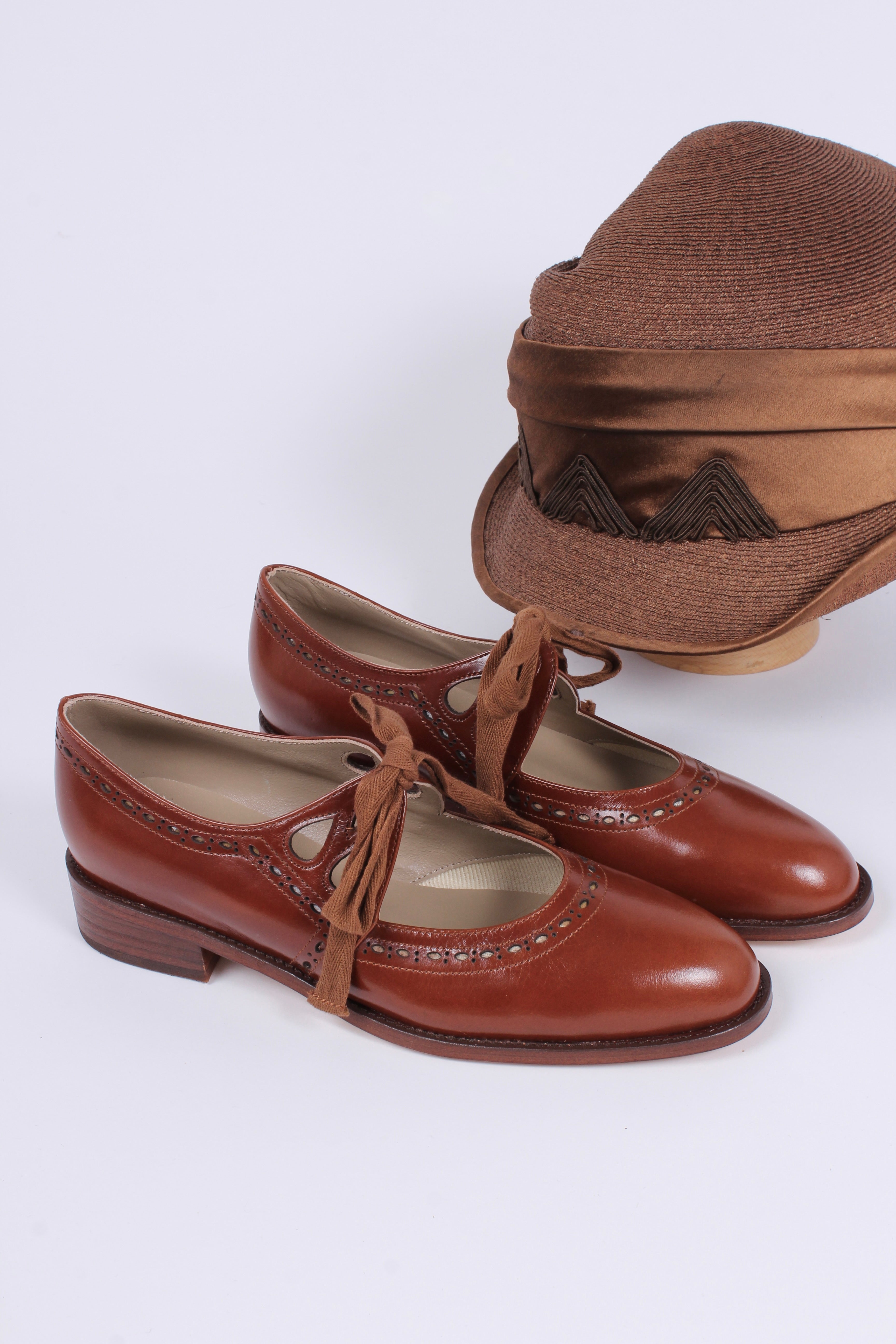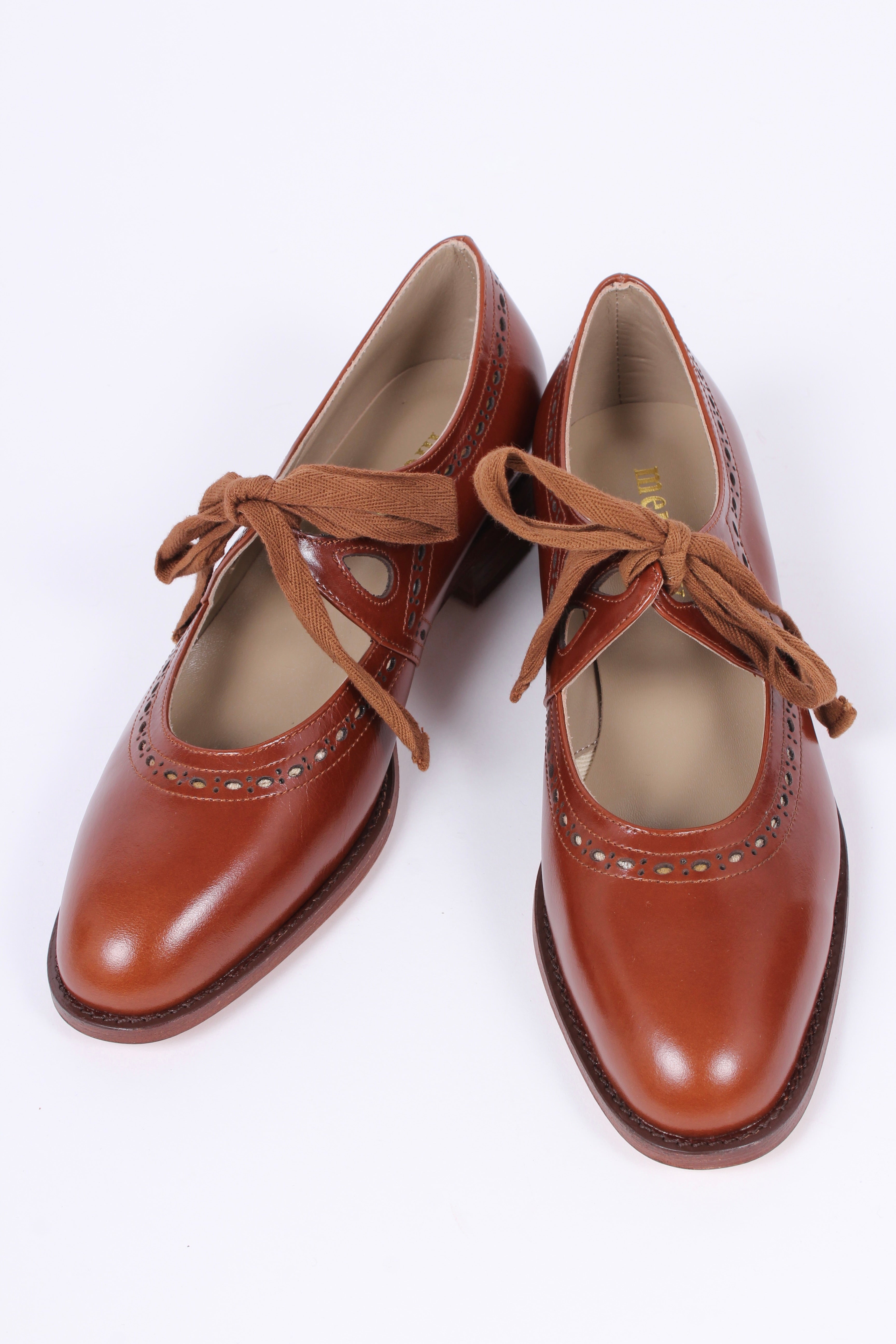 1930'er sko med udskæringer og sløjfe - Cognac brun - Anna