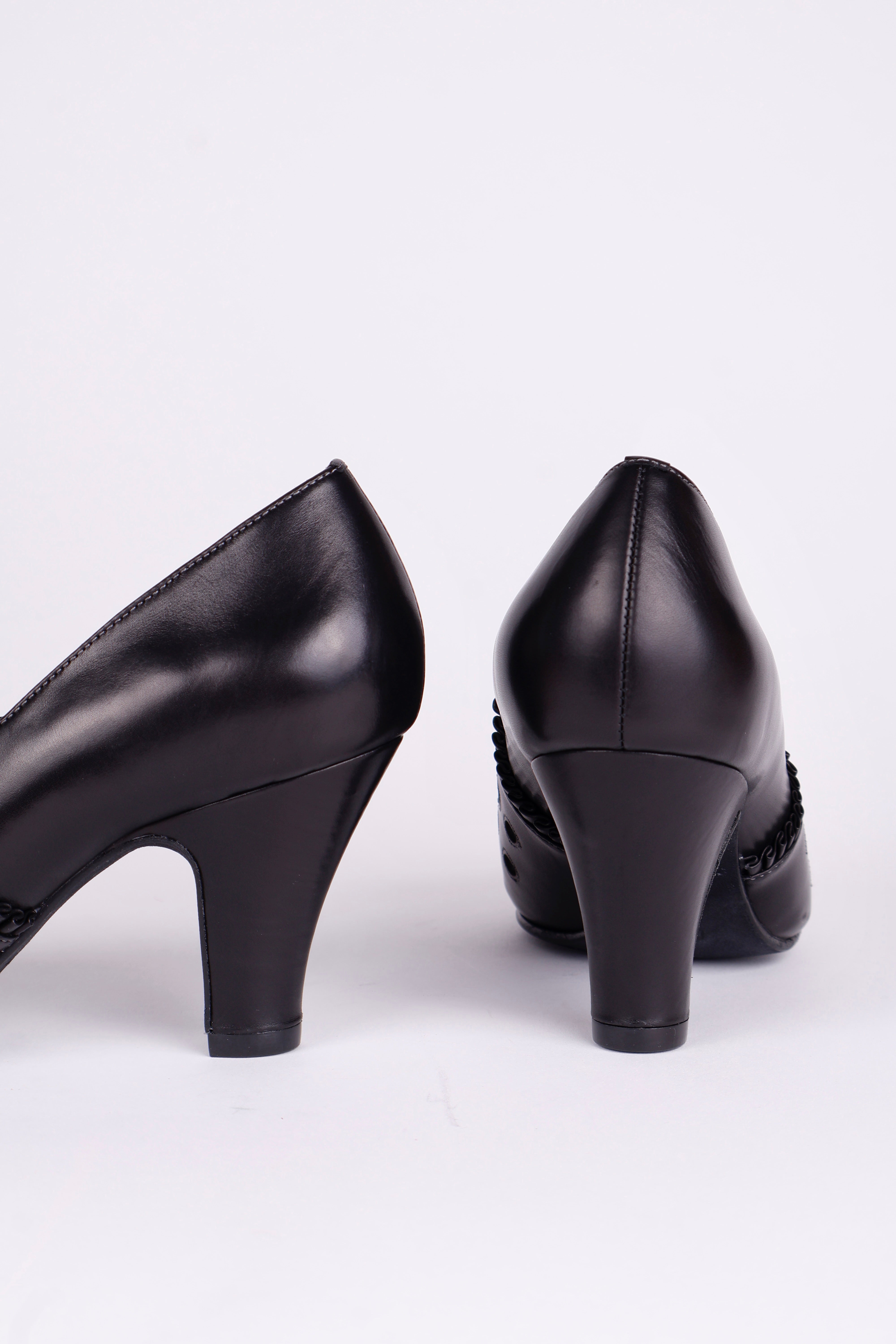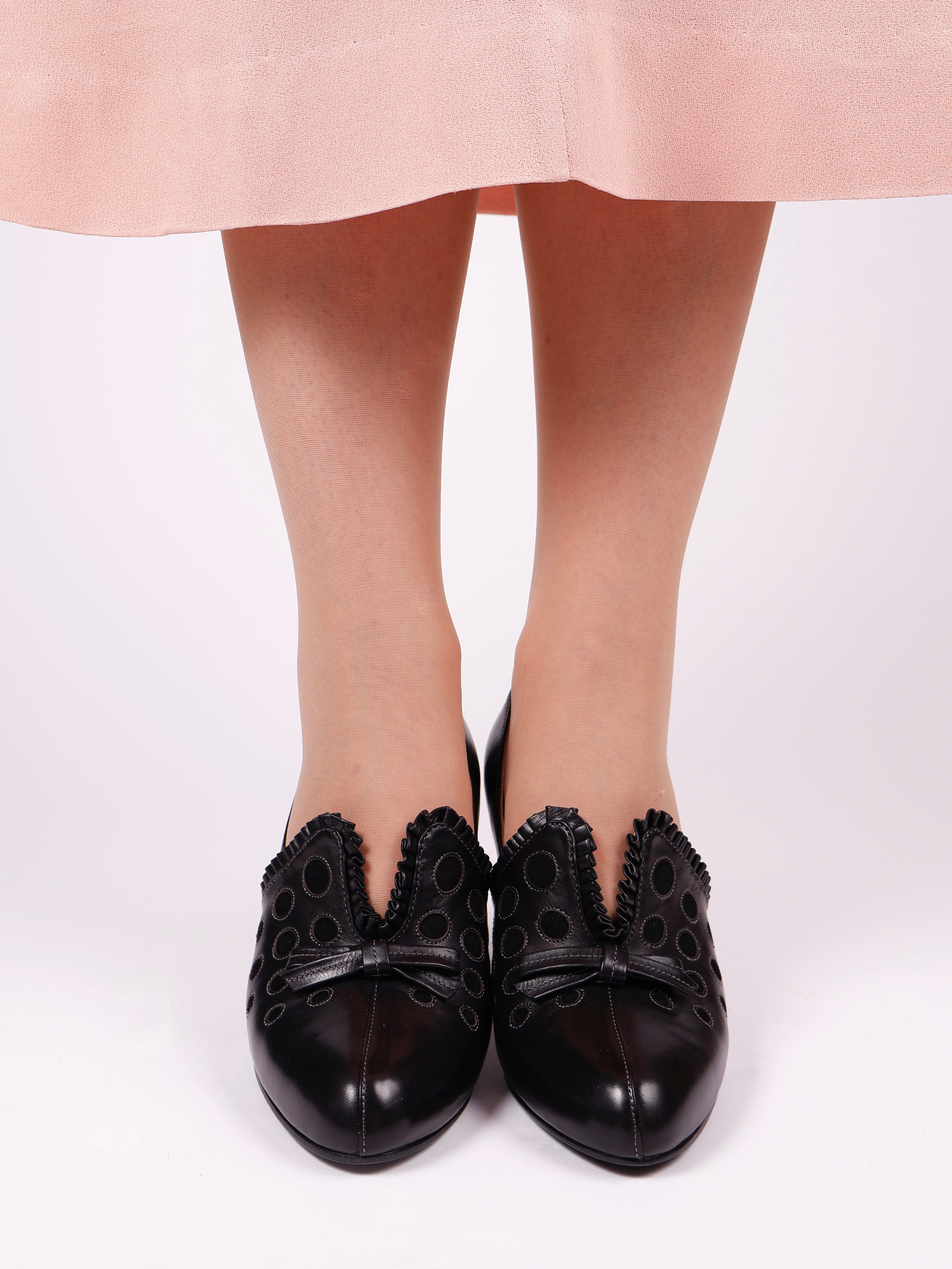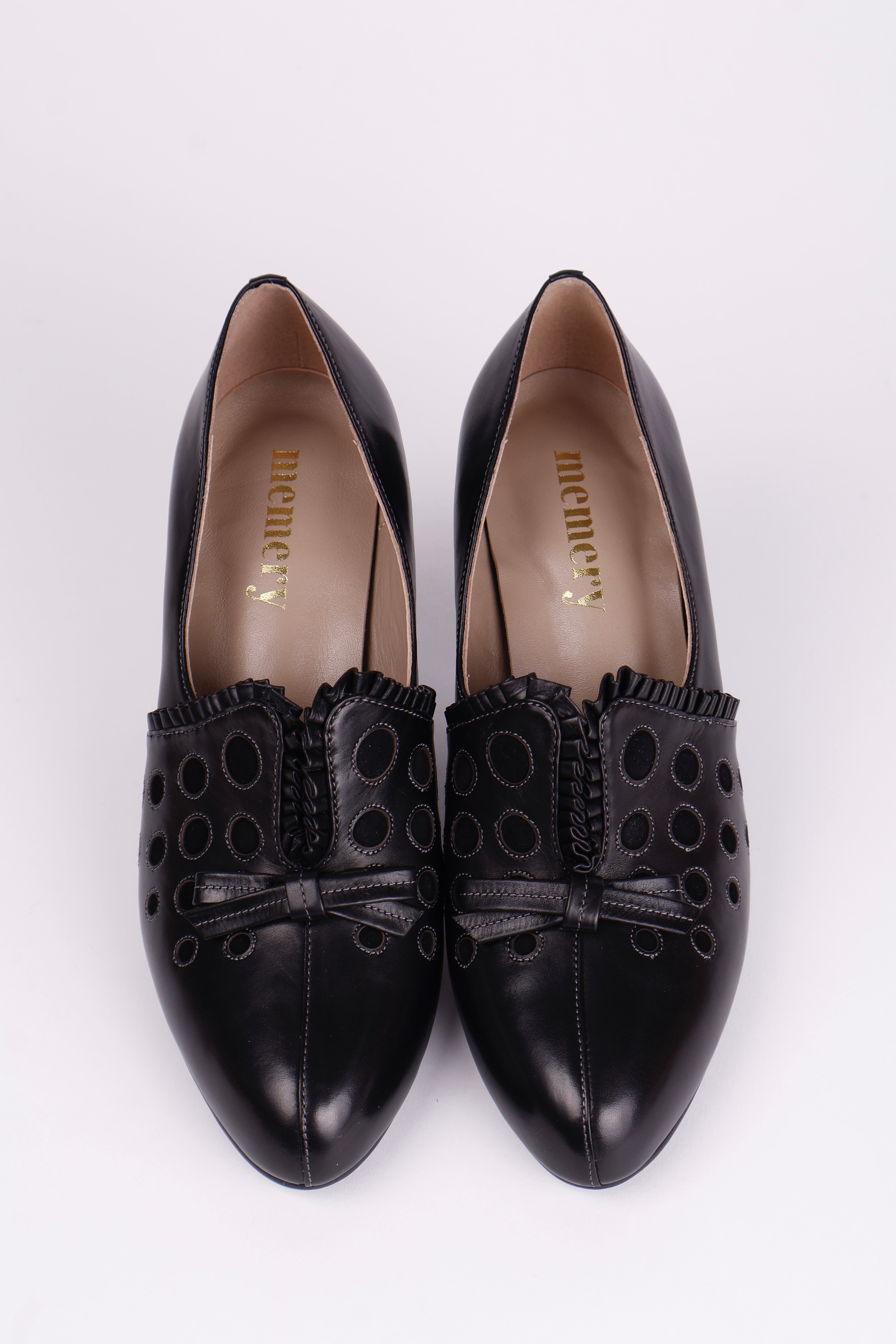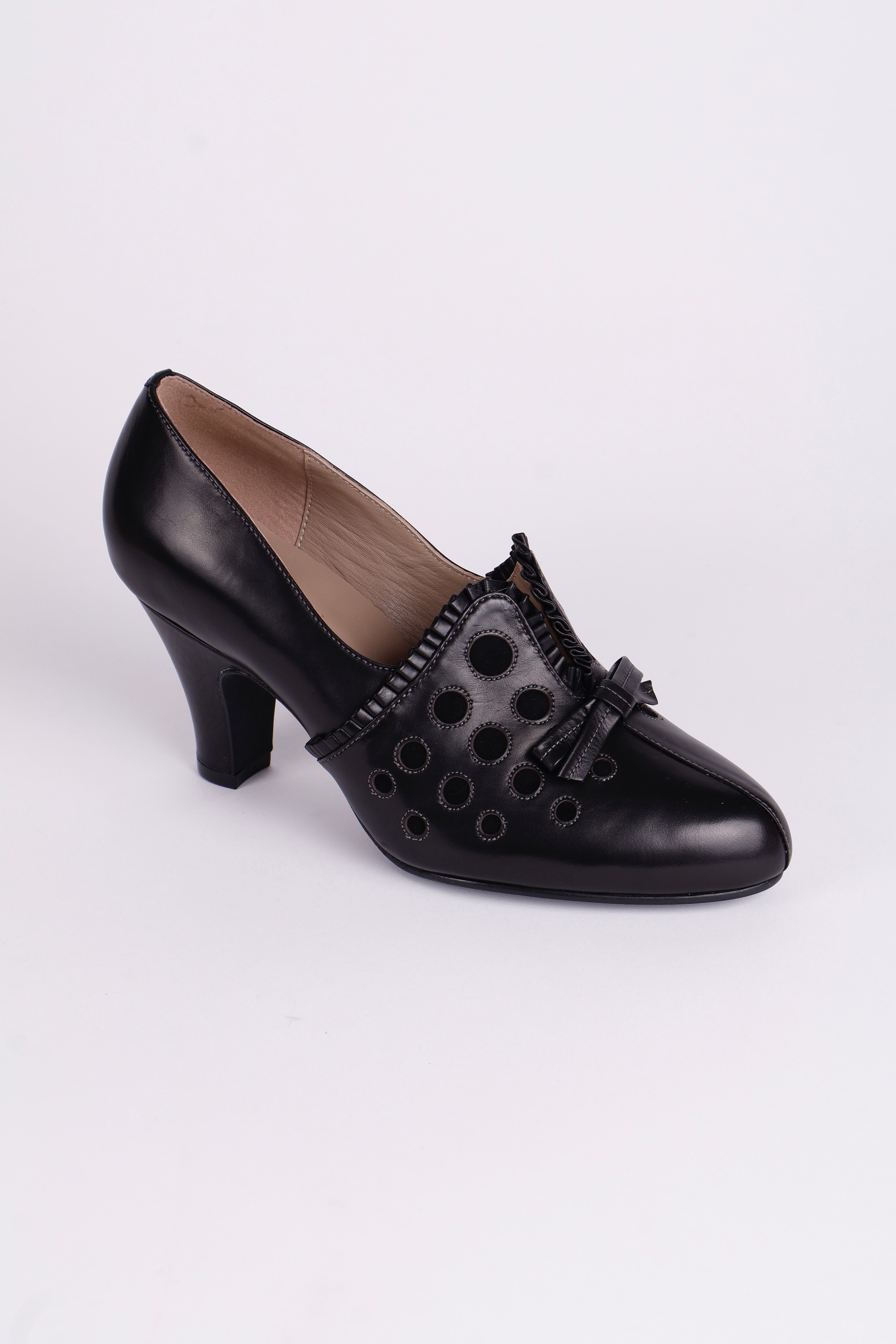 Elegante 1930'er inspirerede pumps med sløjfe, cirkler og flæser