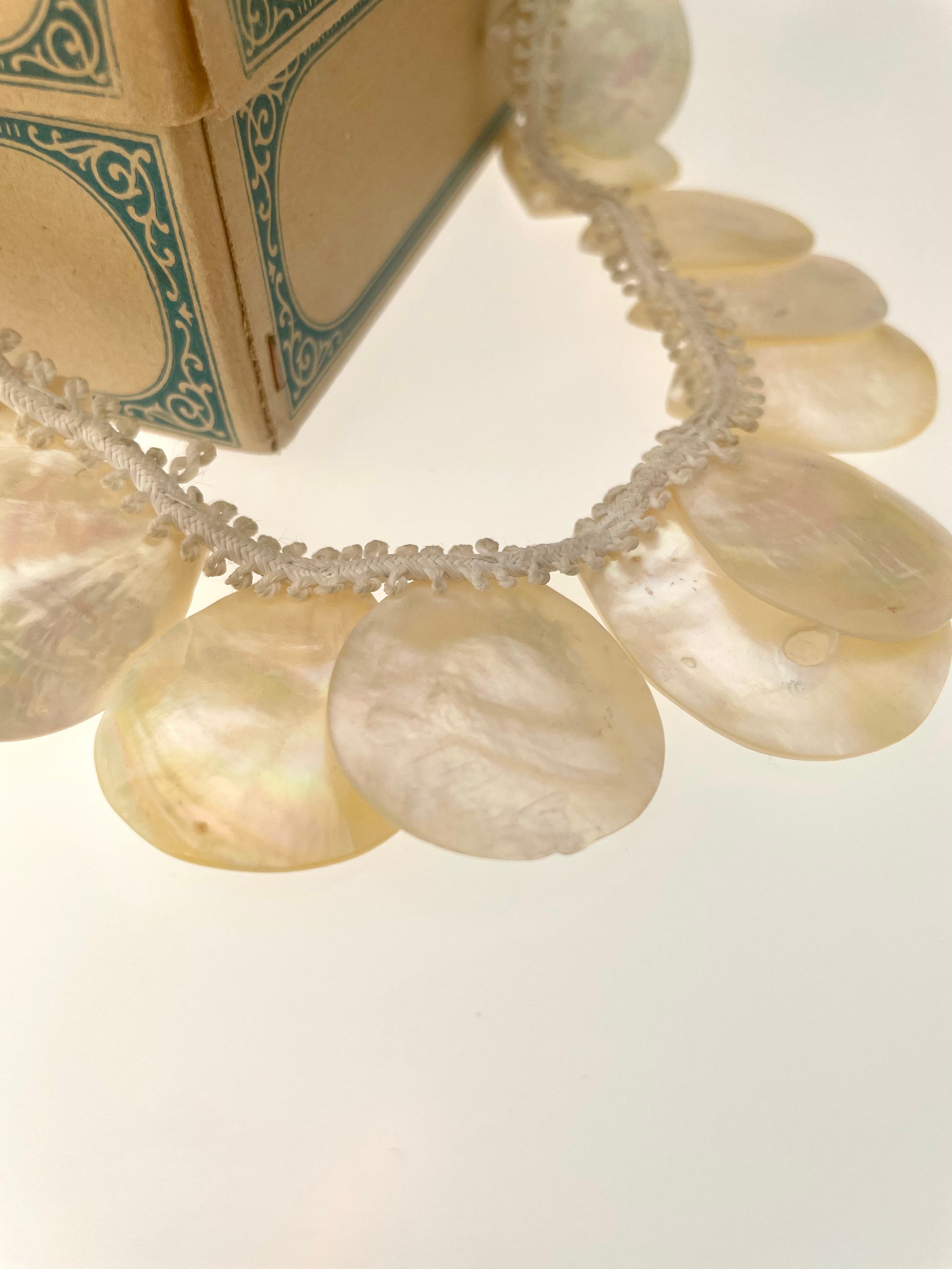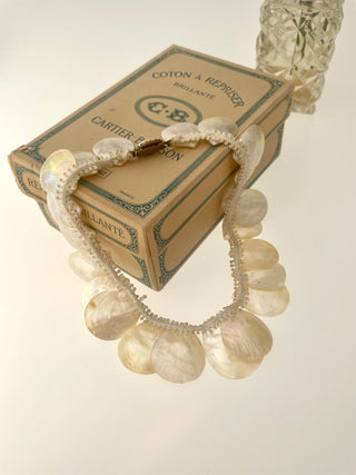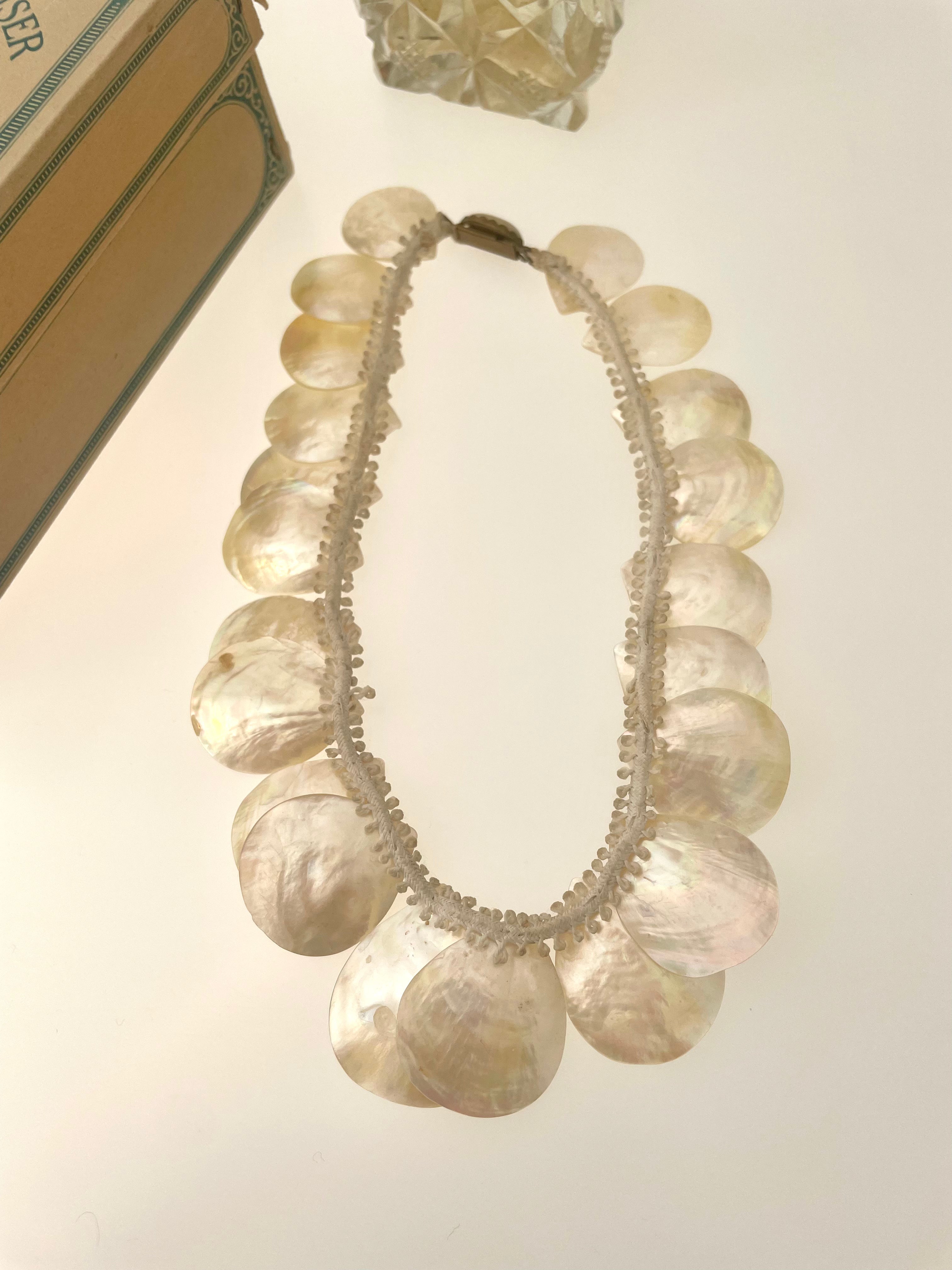 Flot halskæde med skaller med perlemorseffekt og fin lås.