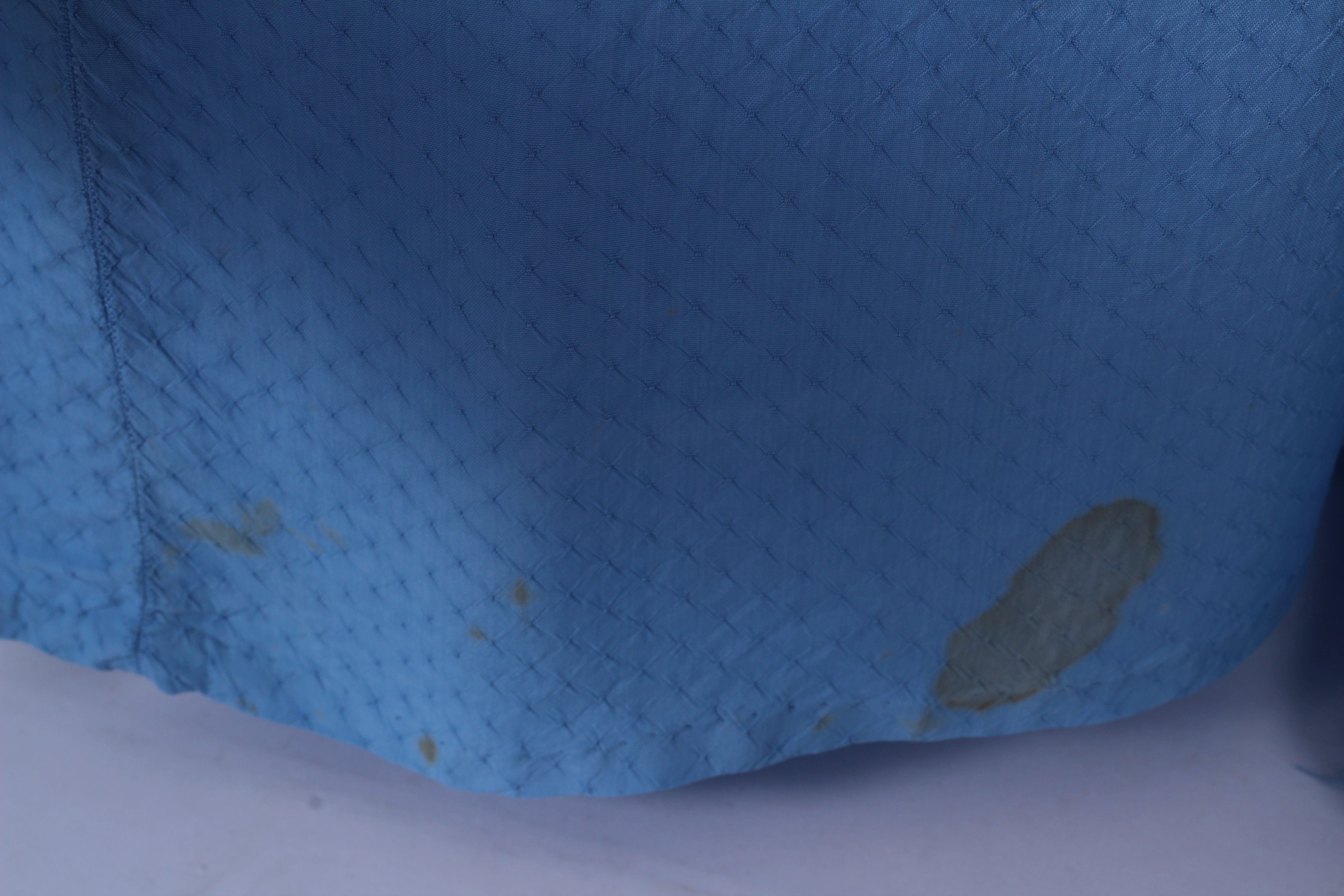 Kjolen er i en flot stand. Der er flere brunlige pletter for neden på skørtet samt svag skjold på ærmet. Kan fjernes hvis kjolen afkortes med 5 cm. Se fotos og tjek standardbeskrivelserne. Er vasket og strøget.