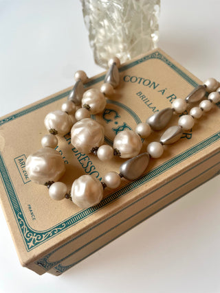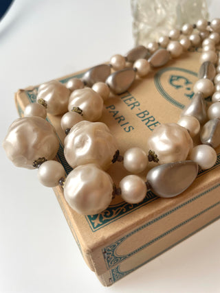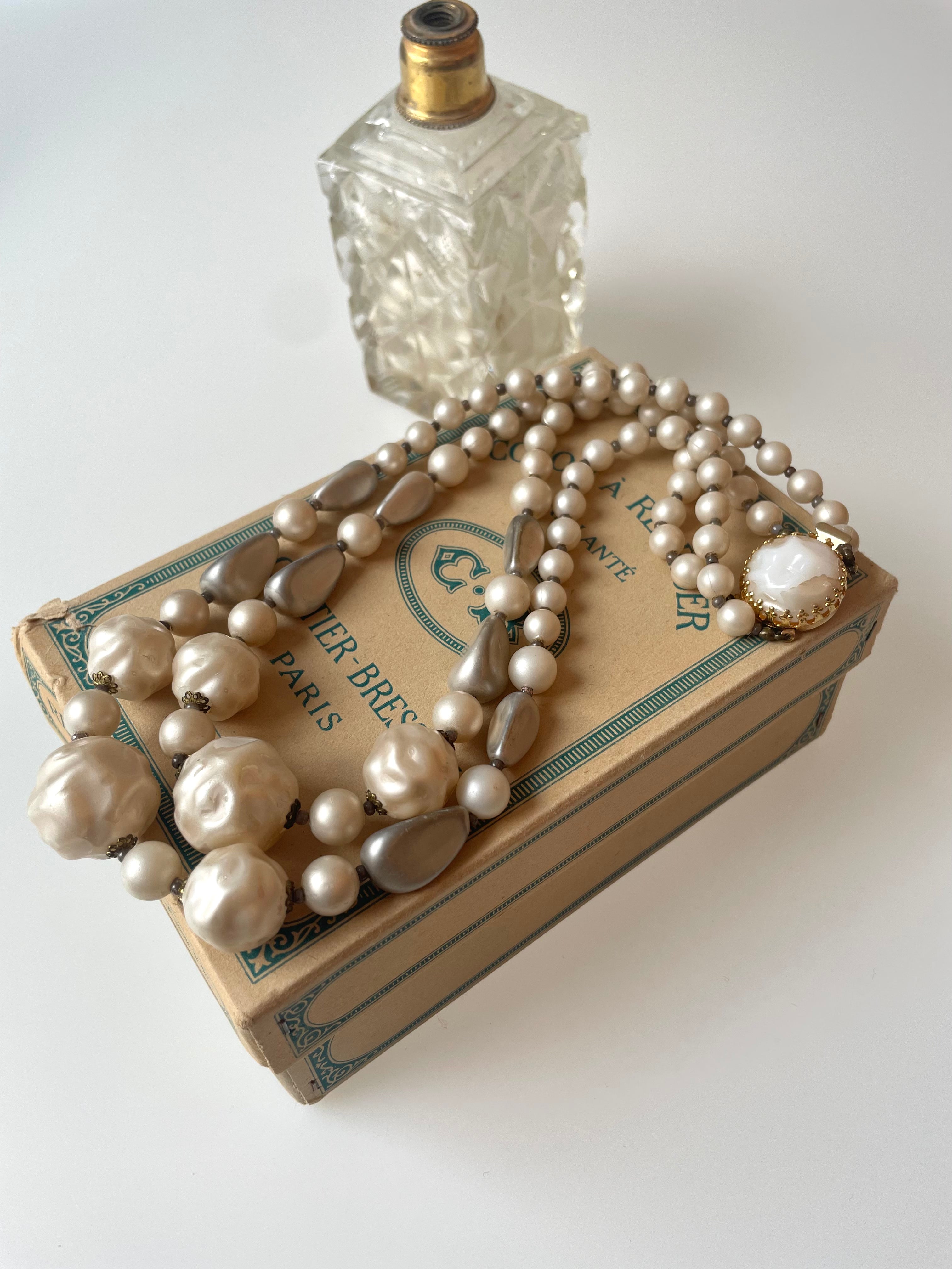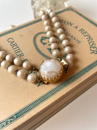 Flot dobbeltradet perlehalskæde i råhvide farver med stor flot lås.